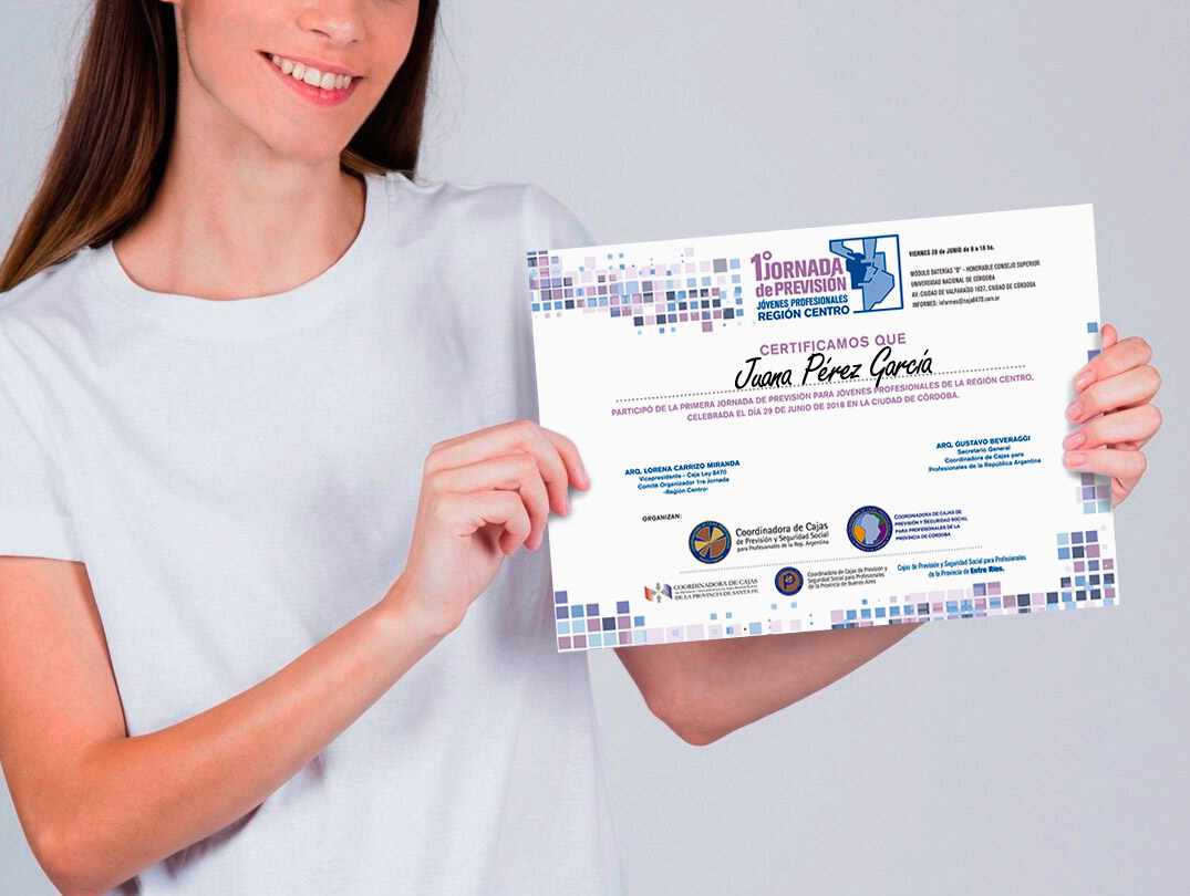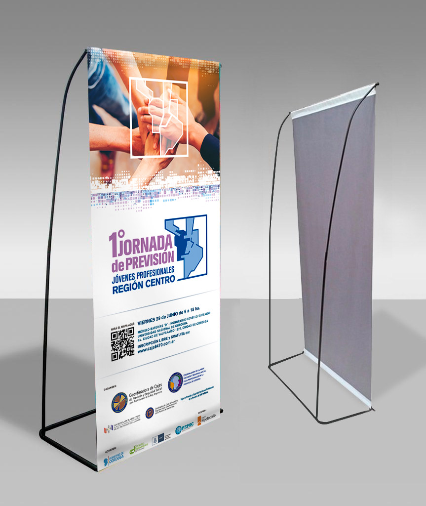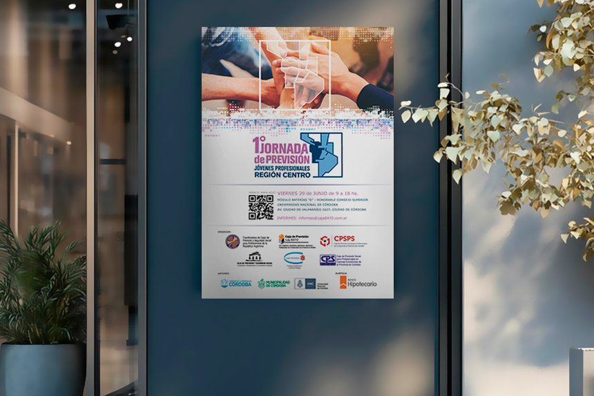 Diseñamos piezas gráficas para las jornadas profesionales organizadas por la Caja de Previsión -Ley 8470 de la provincia de Córdoba, Argentina. Logotipo, banners de pié, folletos,  posters, gafetes, entre otros.